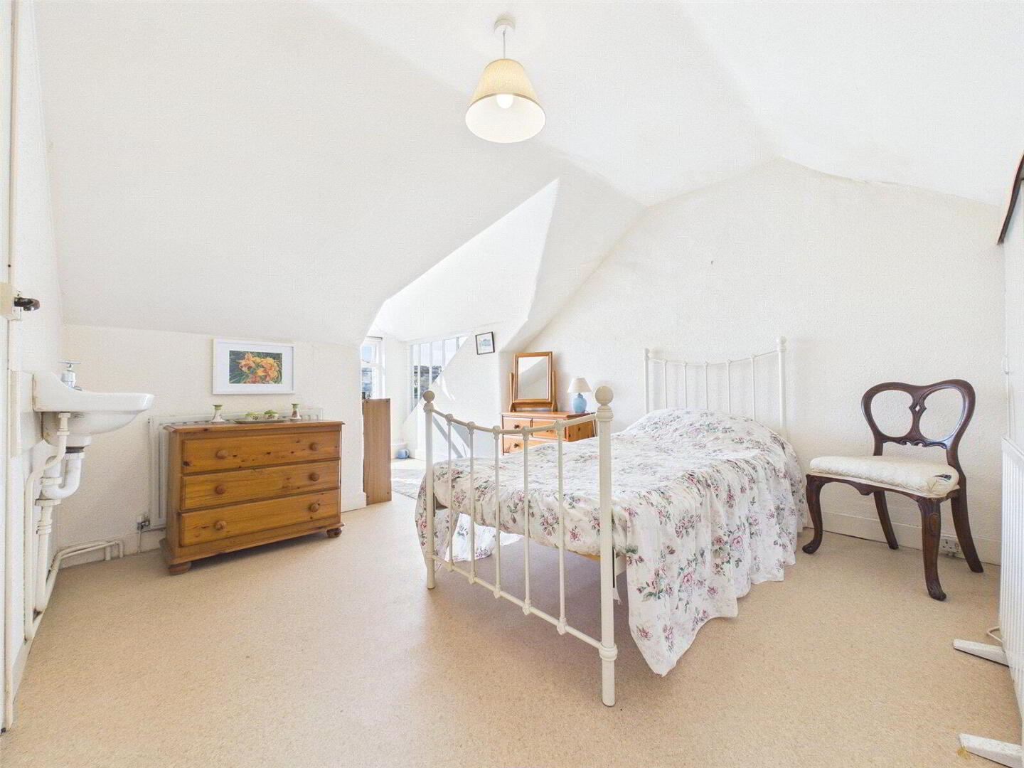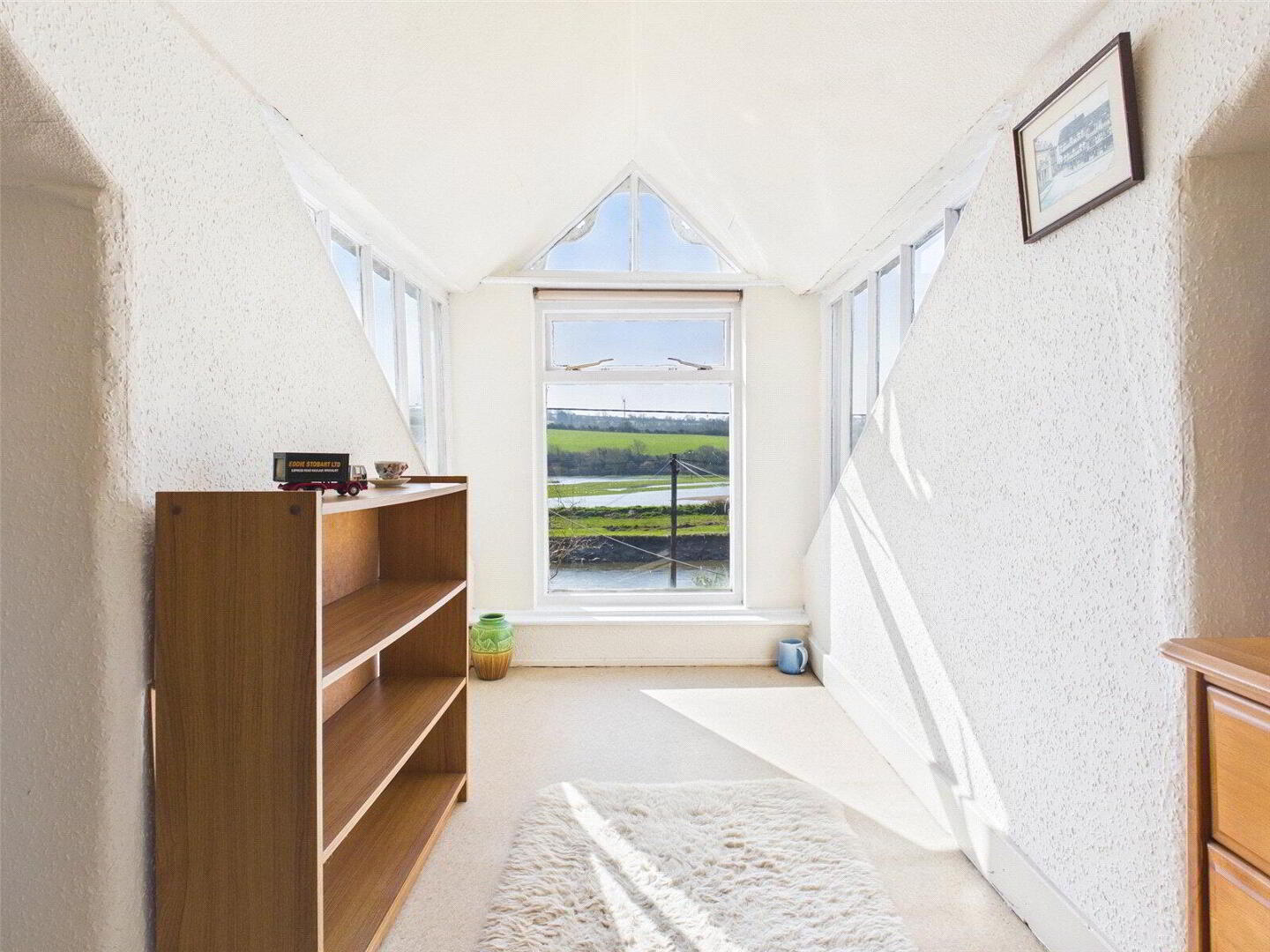 Continuing to the top floor, the staircase leads to a further spacious double bedroom. This room benefits from fitted wardrobe space and a basin with water connection, while the standout feature is the dormer window which provides breathtaking 180-degree panoramic views across the Camel Estuary and towards the Camel Trail, undoubtedly the finest vantage point within the home.
