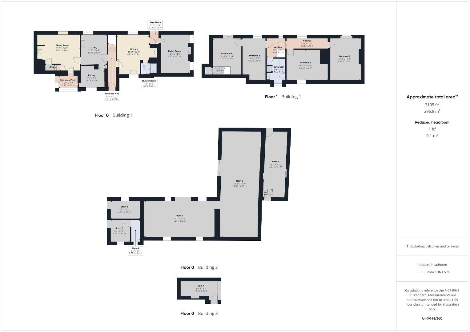 • Approx. 3,195 sq ft including barns and outbuildings
