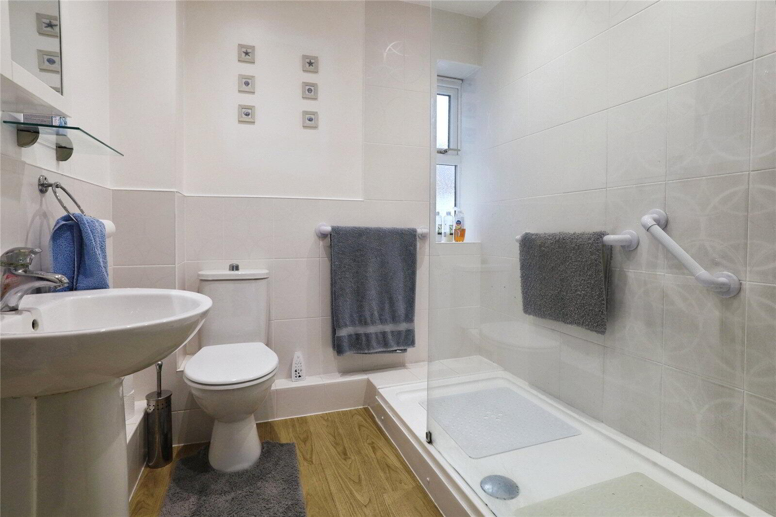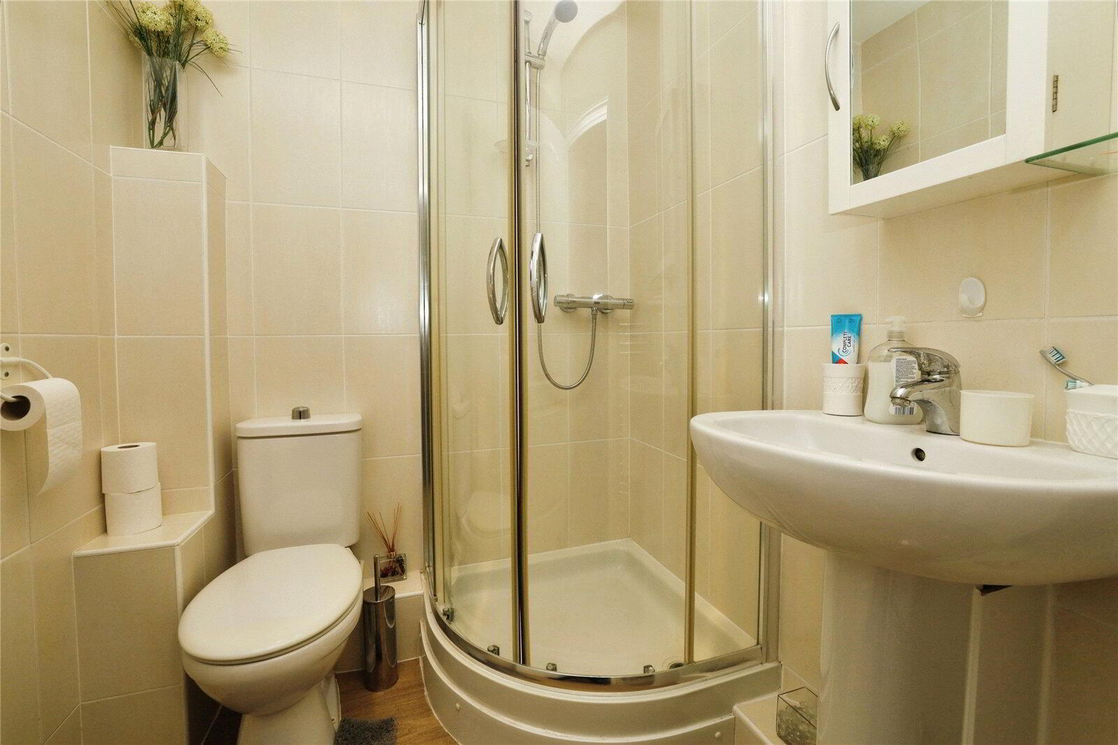 There are 3 Bedrooms (the main bedroom being a generous double and benefiting from mirror-fronted built-in wardrobes and a smart En-suite Shower Room) while the second bedroom is also a comfortable double and the third offers an ideal space for a home office or guest room. A modern Shower Room serves the remaining bedrooms, finished with a large shower enclosure, a WC and wash hand basin.
