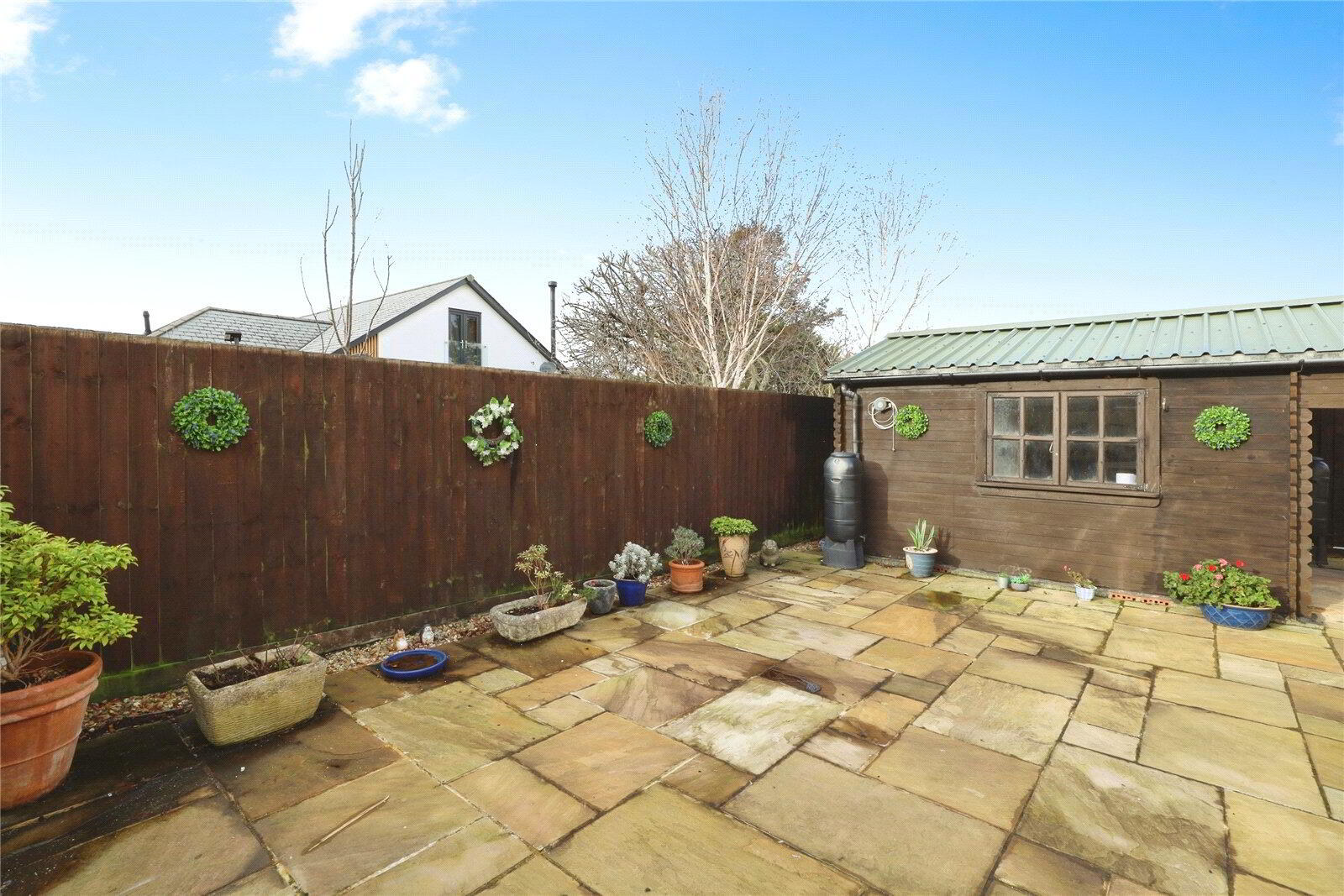 Outside, the rear garden is fully enclosed and designed in a low-maintenance courtyard style complemented by a substantial timber summerhouse that would work equally well as a home office, studio or workshop. To the front, a brick-paved driveway provides off-road parking for 2 vehicles and leads to the Garage which has both power and lighting connected and an electric door.