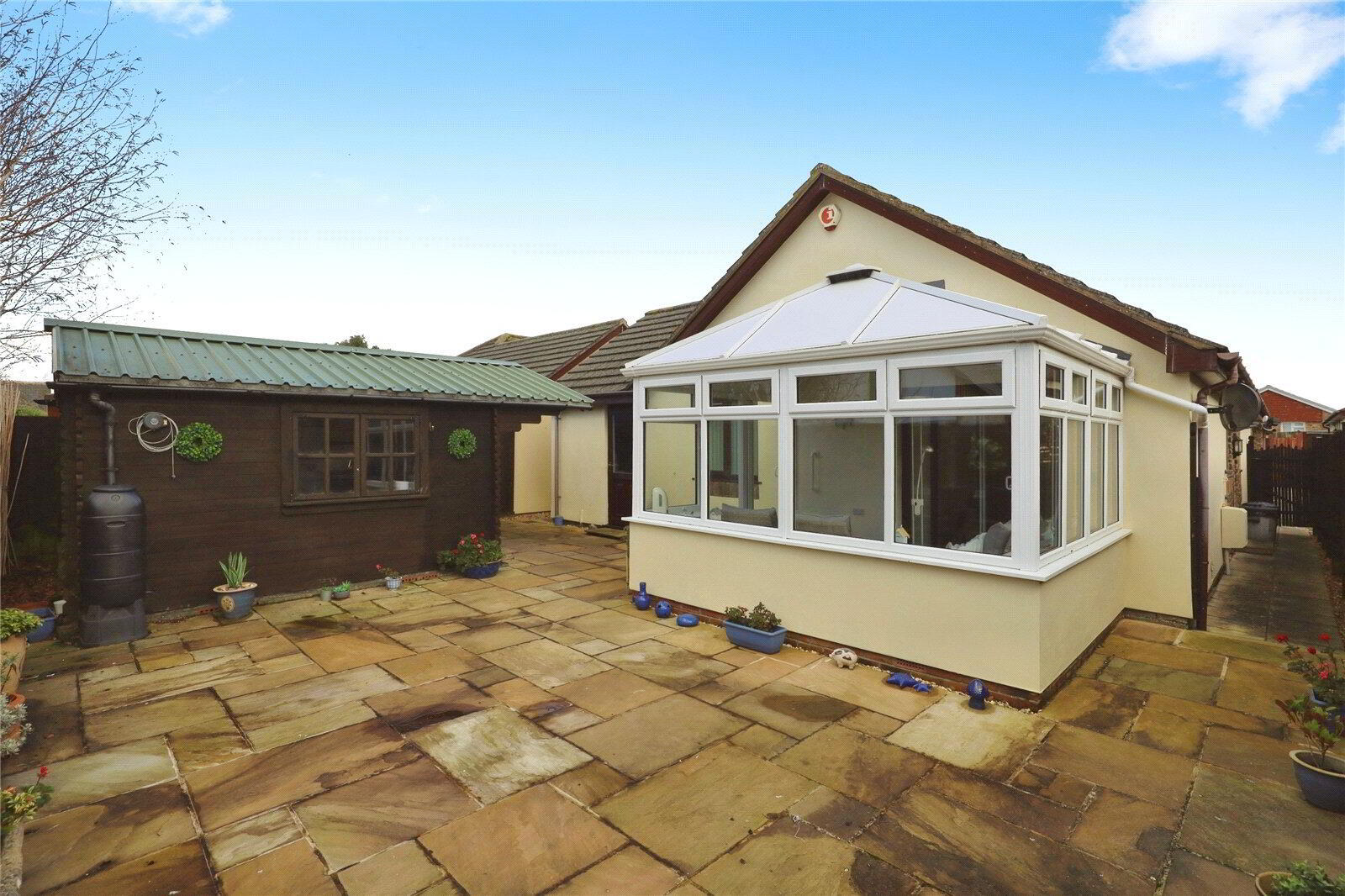 Beautifully updated three bedroom detached bungalow with conservatory, enclosed garden, summerhouse, garage and parking, all set in a quiet cul-de-sac close to the beach.