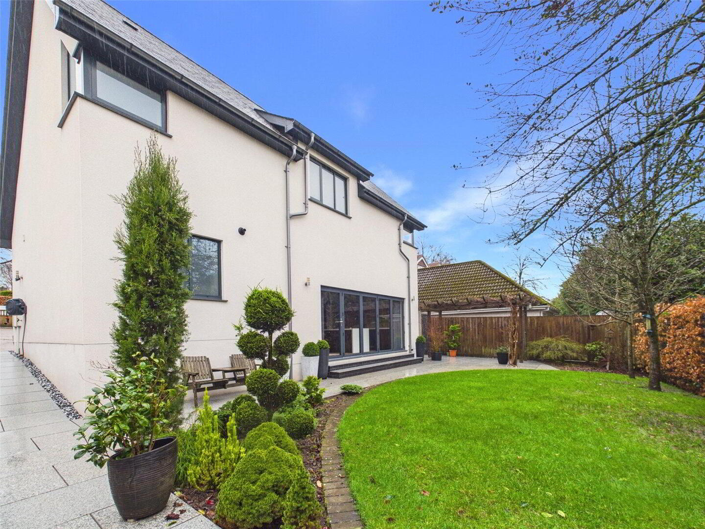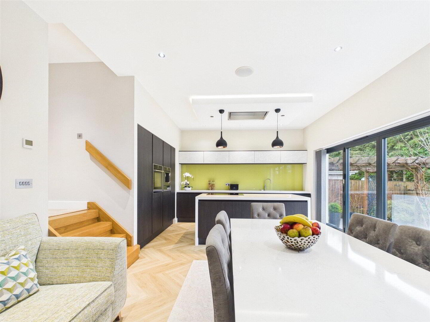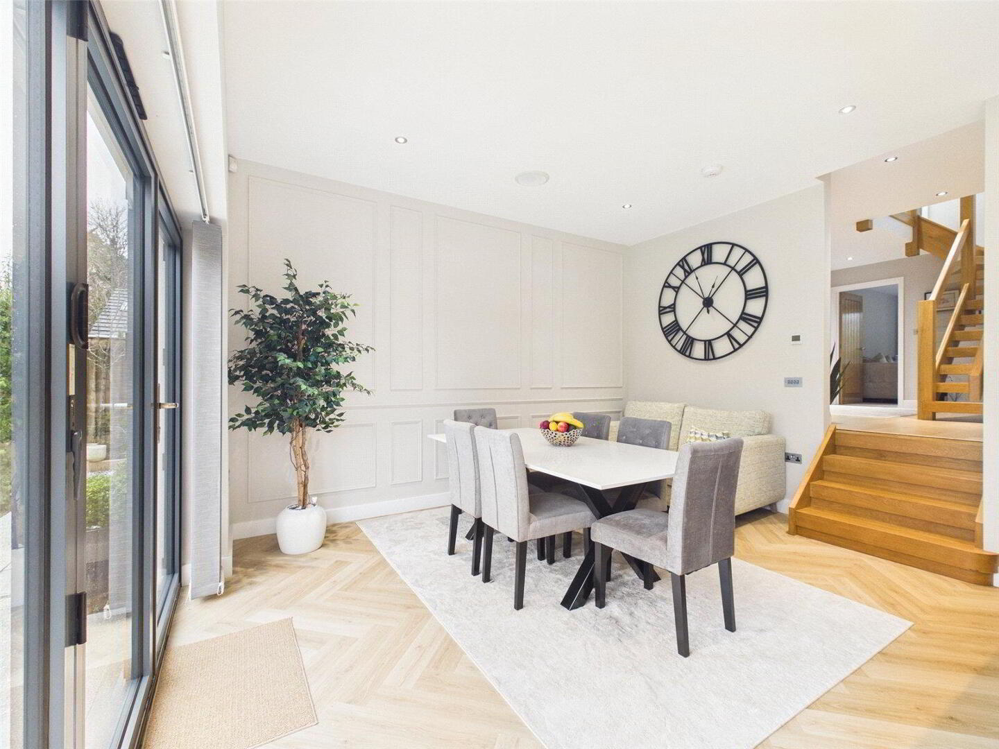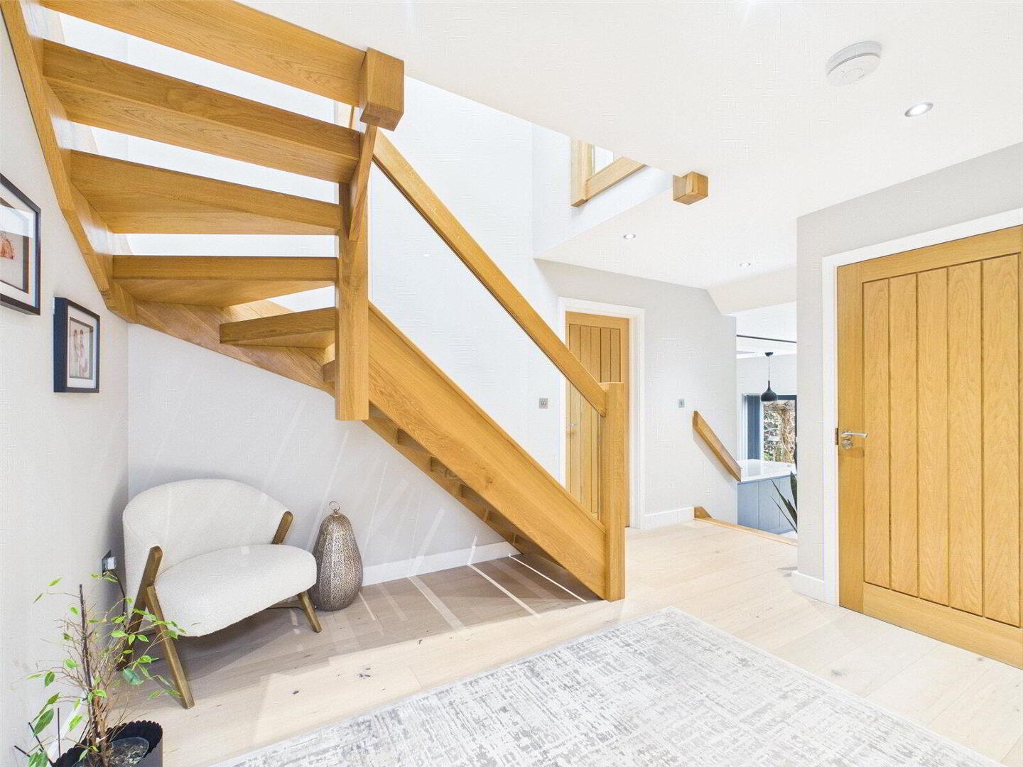 Constructed just a few years ago to an exacting standard, the house has been thoughtfully designed to deliver modern luxury, elegant proportions and effortless day-to-day living. From the moment you step inside, the quality of finish is immediately apparent. A generous and welcoming entrance hall creates a strong first impression and provides access to the principal living spaces, all of which are beautifully styled and flooded with natural light.