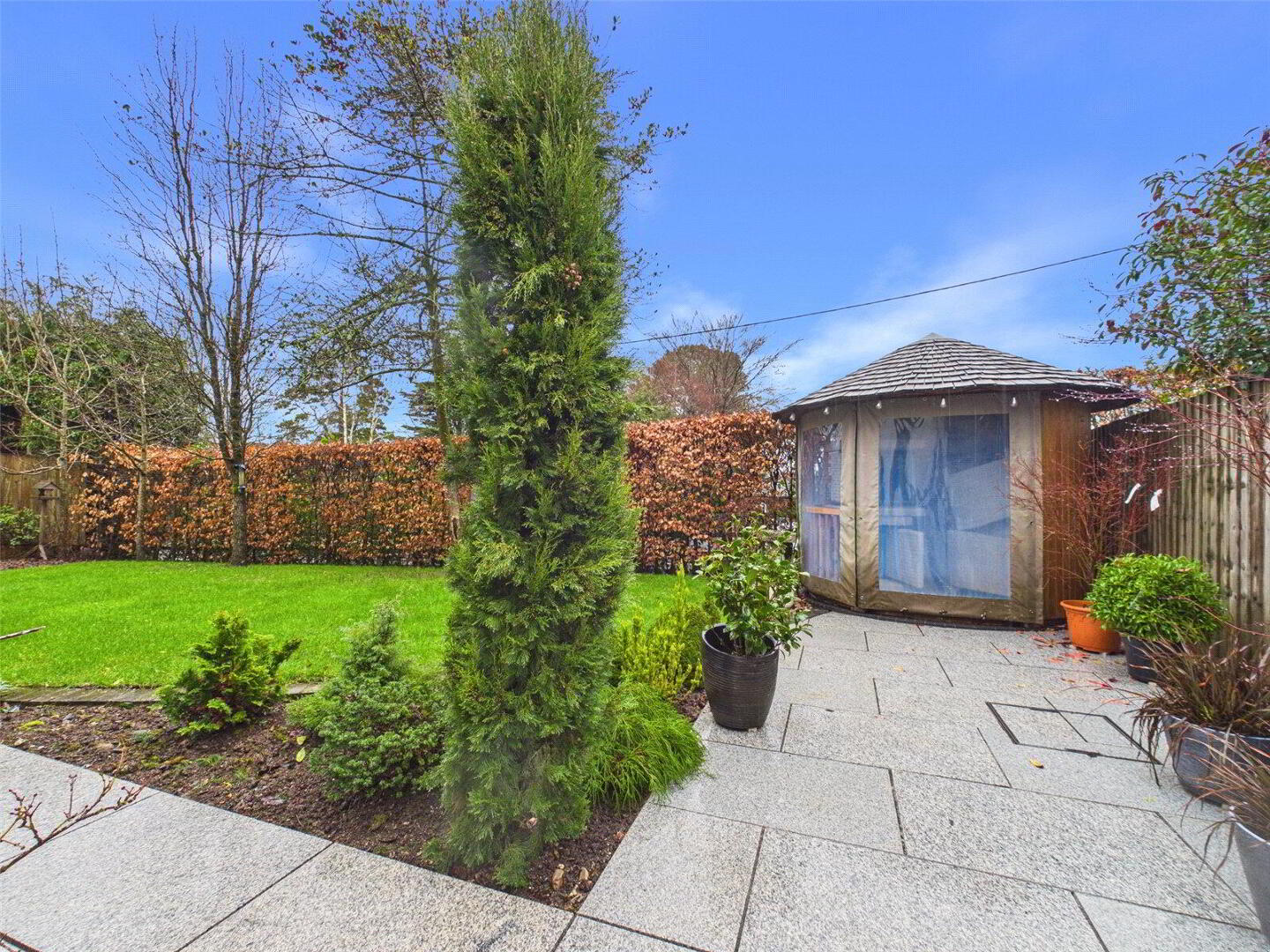Externally, the property is equally well presented. A private driveway provides off-road parking and leads to a larger-than-average garage, offering excellent storage or workshop potential. The front garden is laid to lawn with useful sheds discreetly positioned, while the rear garden provides a peaceful and enclosed setting, mainly laid to lawn with a patio area, perfect for al fresco dining. A charming summer house further enhances the outdoor space, offering flexibility for relaxation, hobbies or entertaining.