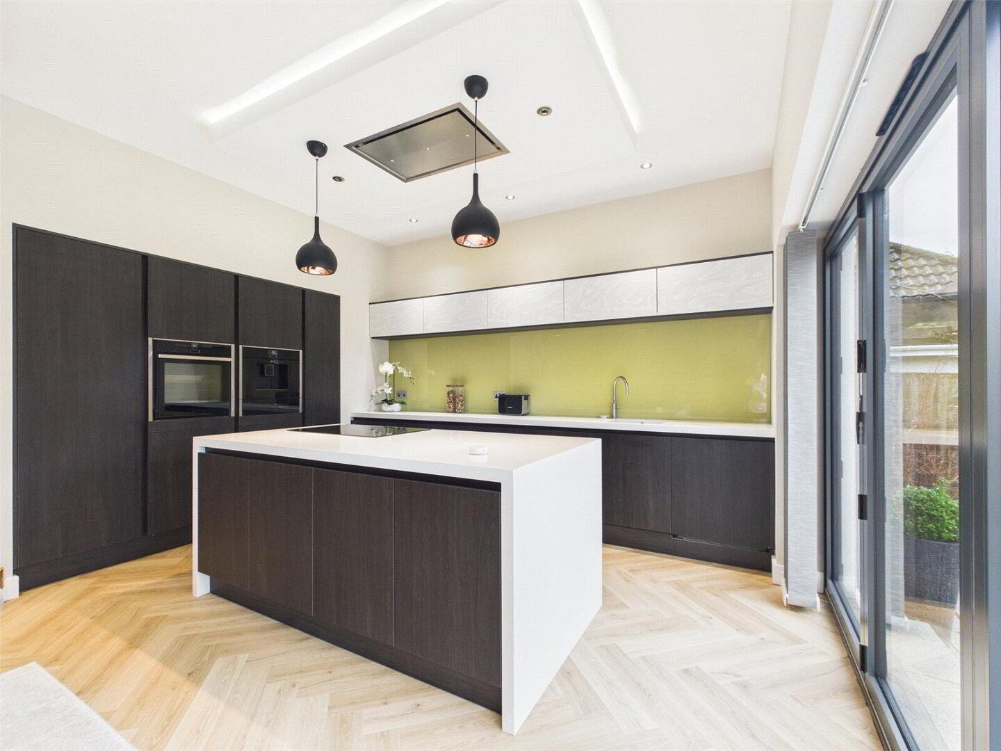 At the heart of the home is a stunning kitchen and dining room, perfectly suited to both family life and entertaining. Finished to a high specification, the kitchen features an extensive range of contemporary cabinetry, integrated appliances, a boiling water tap and clean, refined lines throughout. Bi-fold doors open directly onto the garden, seamlessly blending indoor and outdoor living and creating an ideal space for summer gatherings or relaxed evenings at home.