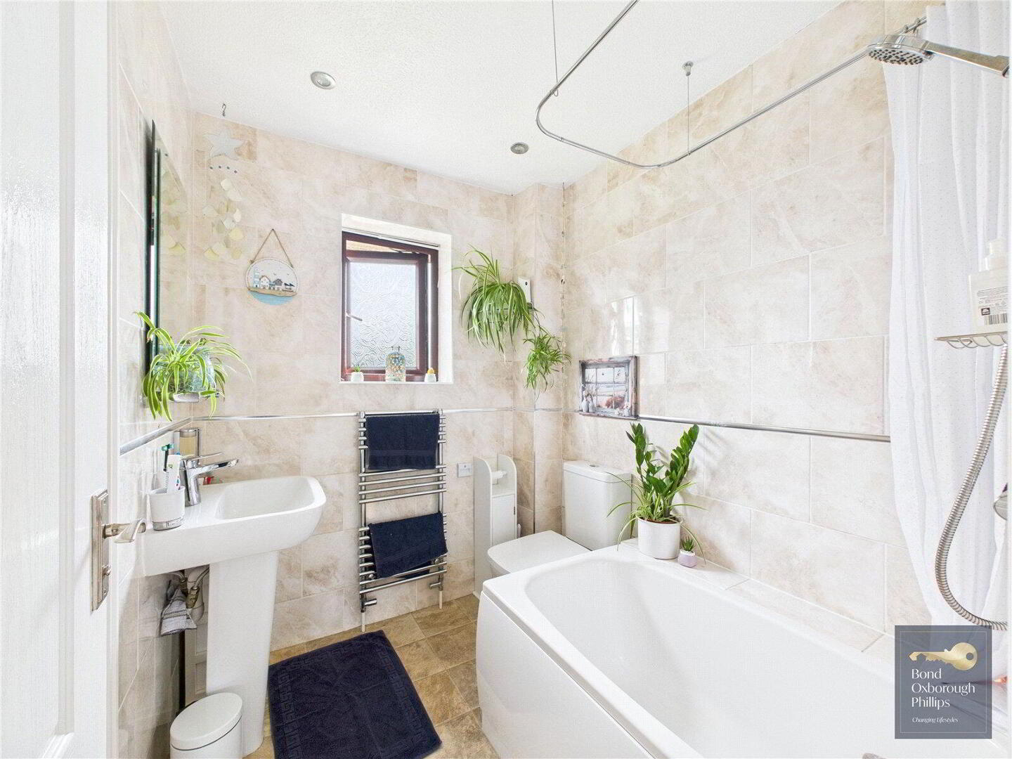 Upstairs is no different. The landing feels spacious with more natural light coming in from the window. Each of the bedrooms have been decorated giving a more modern feel with all three benefitting from built in storage space. The master bedroom stretches the width of the home creating plenty of space while benefitting from multiple windows that enjoy distant views of the surrounding Devon countryside. Bedroom two again is a double bedroom that looks out over the back garden while bedroom three is slightly smaller with views back towards the countryside and village hall. The bathroom has had a slight adaptation, the shower has been removed and now has a small bathtub with overhead shower.